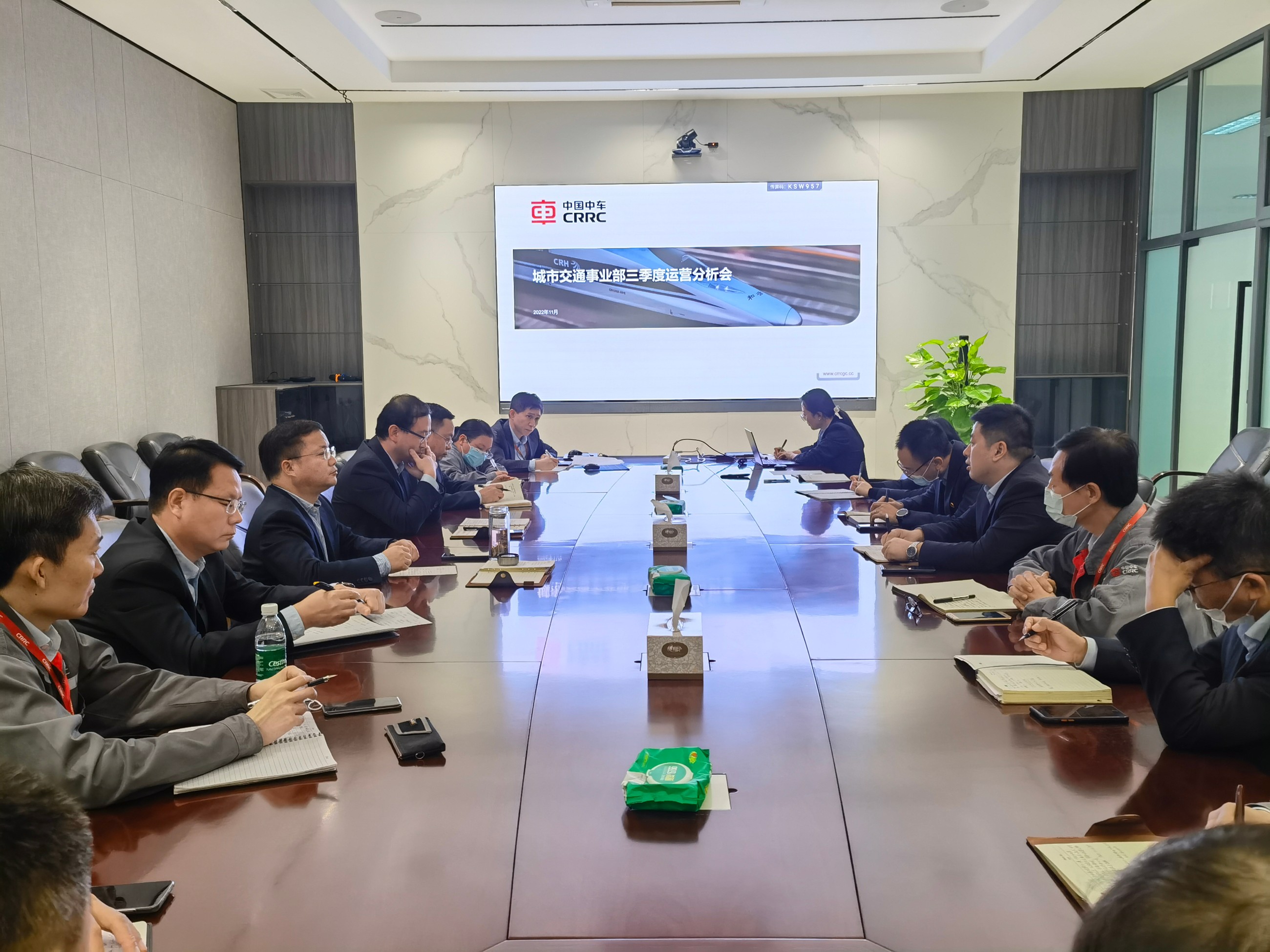 11月2日,捷通公司召開2022年第三季度經(jīng)營管理專題會議。永濟電機公司副總經(jīng)理、總工程師戴碧君聽取了城市交通事業(yè)部關(guān)于三季度指標完成、簽約、開票、回款、費用報銷、市場拓展、營銷體系建立等方面的工作匯報,分別從市場環(huán)境、行業(yè)形勢、產(chǎn)業(yè)拓展三方面分析了公司發(fā)展面臨的嚴峻形勢,并就立體化營銷體系建設(shè)、“產(chǎn)品+”、能量回饋裝置業(yè)務(wù)拓展和四季度工作提出具體要求。