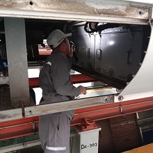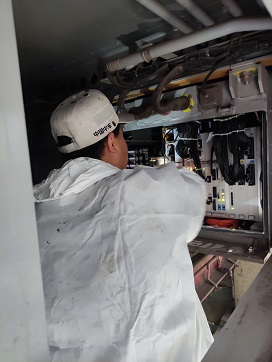 春節(jié)將至,駐上海南服務(wù)站的售后服務(wù)人員王金水對公司生產(chǎn)的空調(diào)裝置、牽引變流器等產(chǎn)品進(jìn)行日常檢查,保障車輛正常上線運行,為旅客提供舒適的出行體驗。